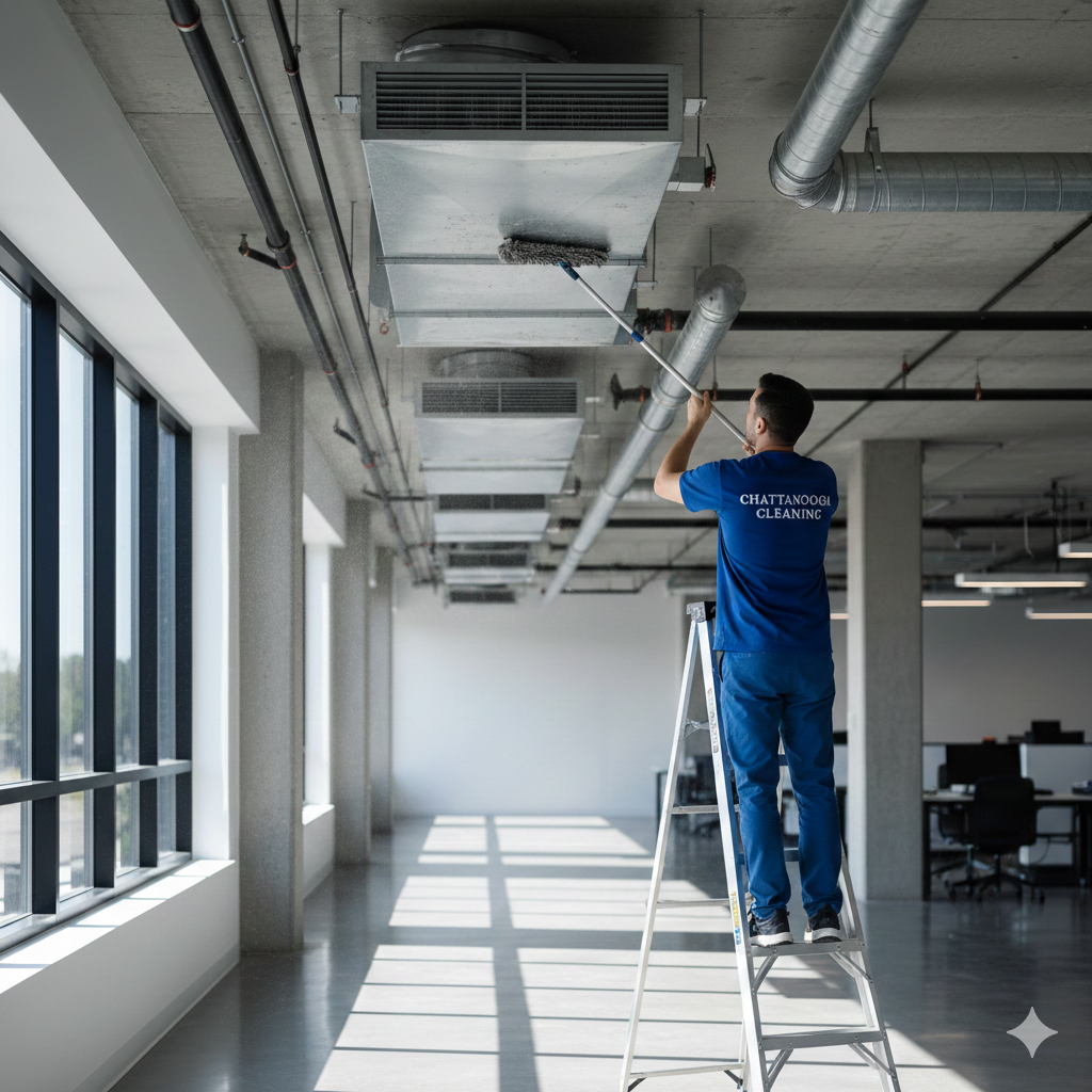 We tackle the heavy-duty environments, offering specialized high-dusting, vent sanitation, and fleet cleaning for Chattanooga’s manufacturing and transportation sectors.